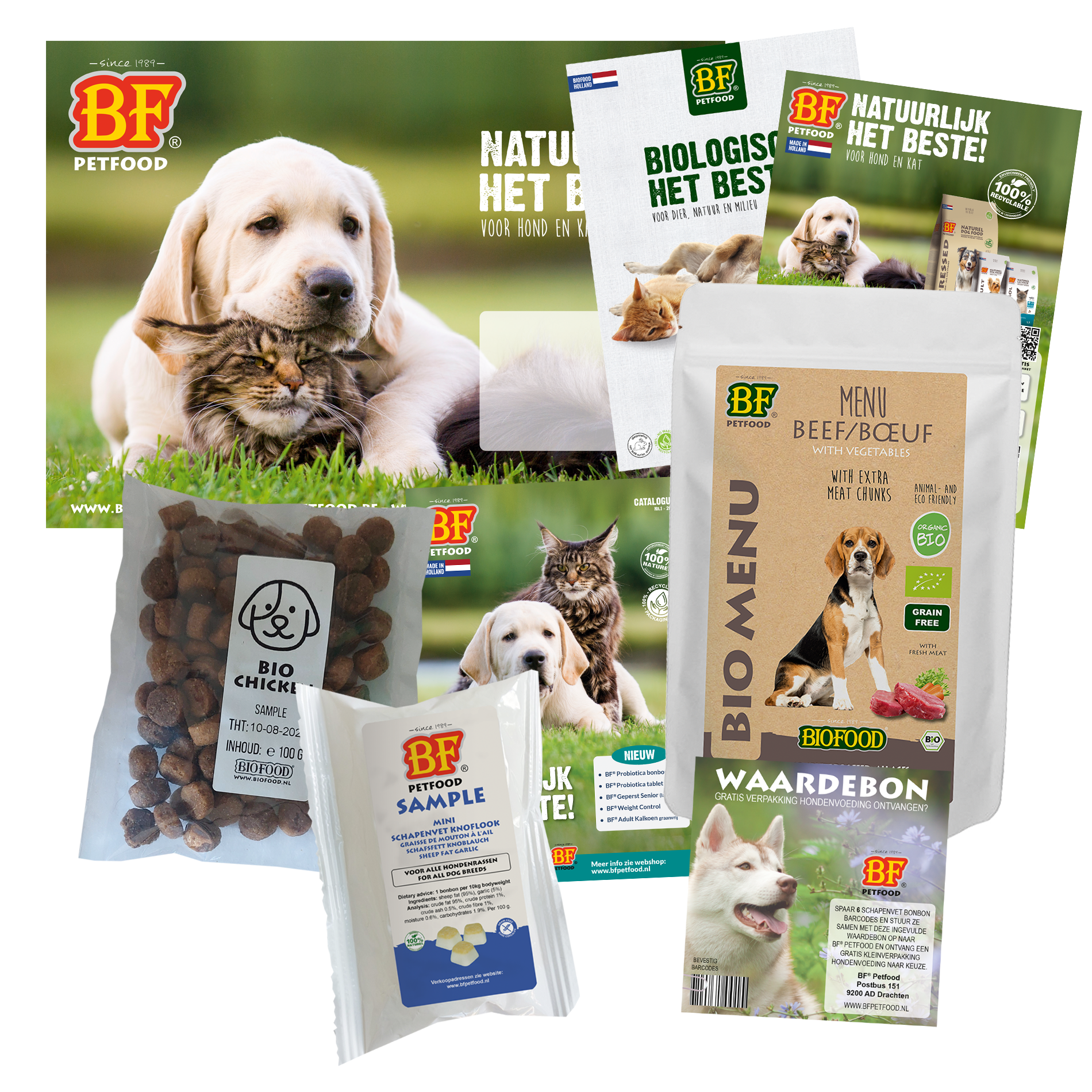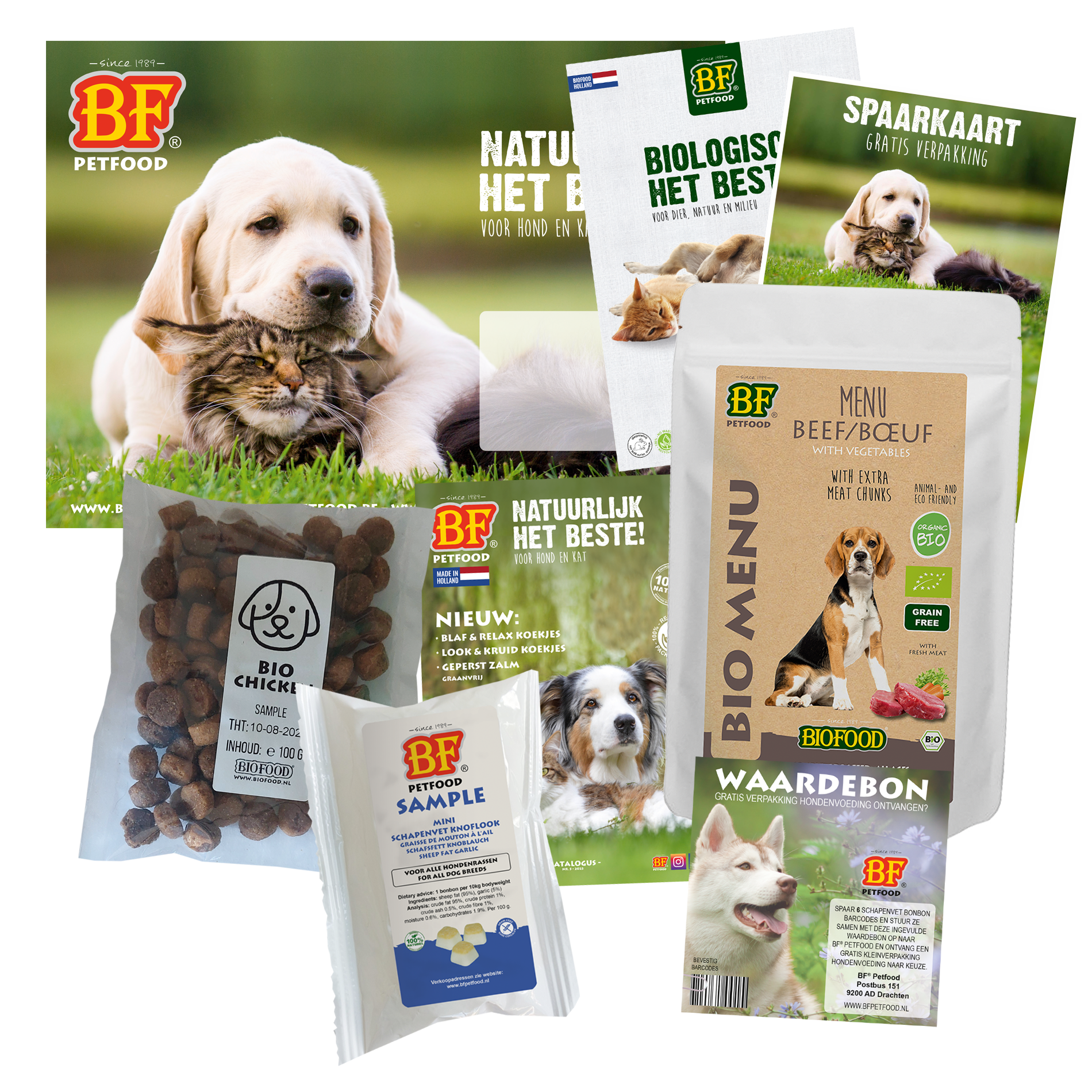 Puur, (h)eerlijk en gezond. Voor dier, natuur en milieu. Het BIOFOOD Bio proefpakket zelf is GRATIS. U betaald alleen de verzendkosten.