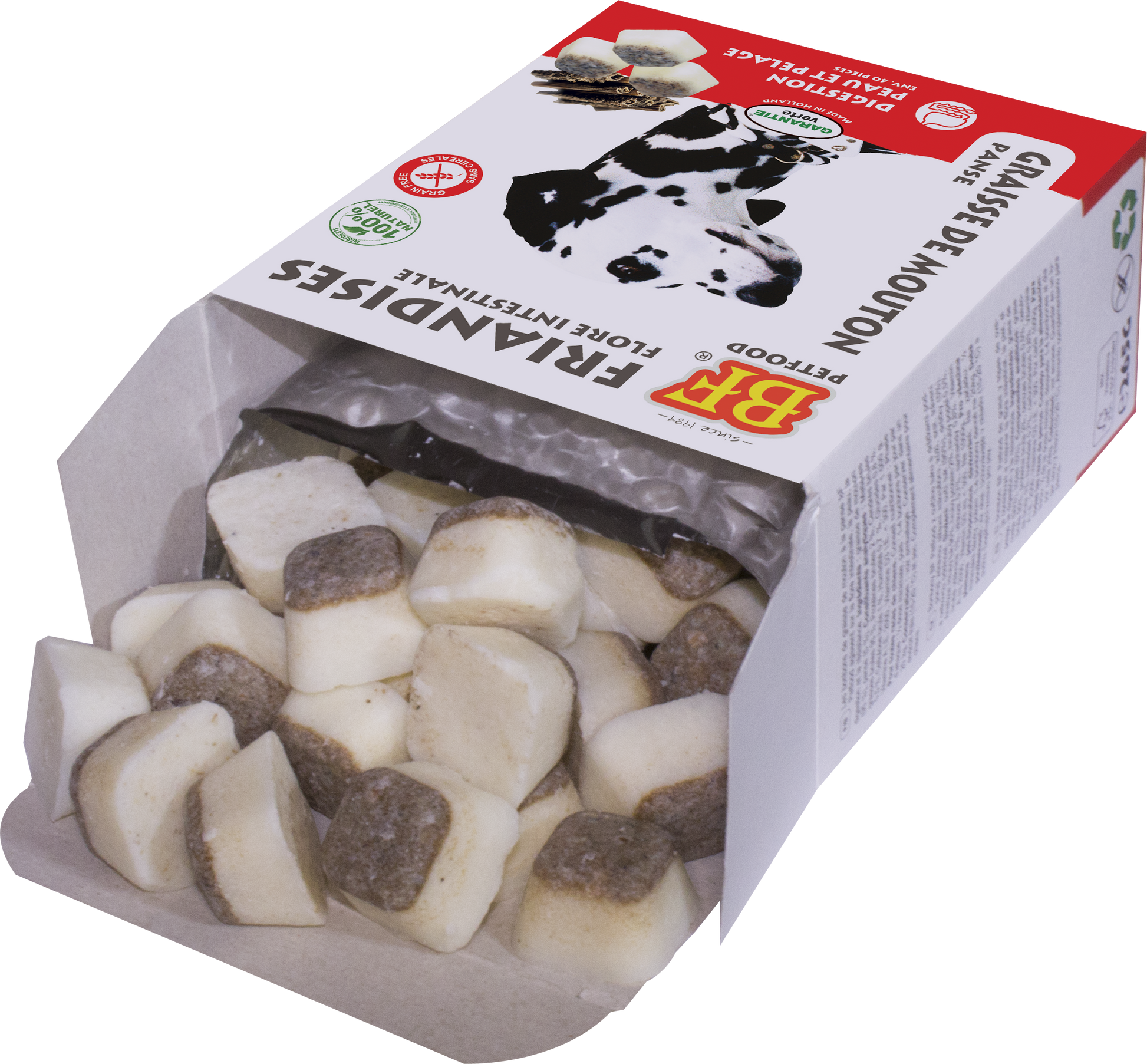 De originele BF® schapenvet bonbon met pens is een natuurlijk en bijzonder probaat middel ter ondersteuning van darmflora, huid, vacht, (spijs)vertering en weerstand. Het is tevens een uitzonderlijk gezonde en smaakvolle toevoeging op de dagelijkse voeding. De met zorg geselecteerde pens bevat noodzakelijke bacteriën en enzymen voor de darmflora.